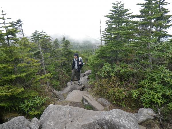 茶臼山までの道は、岩がごろごろしていて、ちょっと急登でしたが、