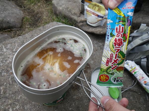 少し、下ったところに展望台があったので、そこで最近店に入ってきた”山の棒ラーメン”を