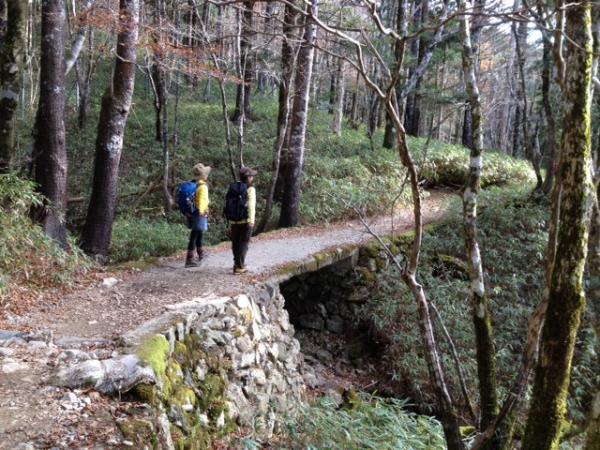 - ビジターセンター(40)日出ヶ岳(30)正木ヶ原(10)尾鷲辻(15)牛石ヶ原(25)大蛇ぐら(70)シオカラ吊り橋(40)ビジターセンター