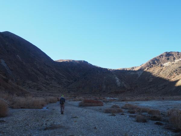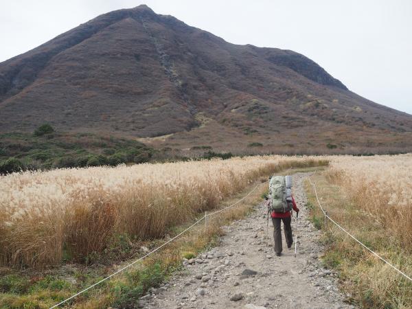 坊ガツルに戻ると、霜でバリバリだったテントが綺麗に乾燥していた。それを畳んでザックに詰め込み、ススキの間を通り、長者原に向かった。次に来る時には雪の時期だな。そんなことを考えながら。