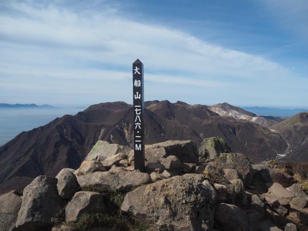 5合目を過ぎると所々で展望が開け、今日ももれなく天気がいい。大船山が右側に見えてくると“段原”に着く。ちょっと休憩。そして山頂へ。