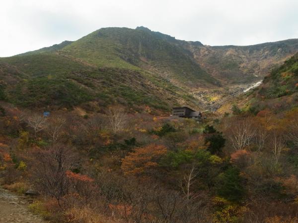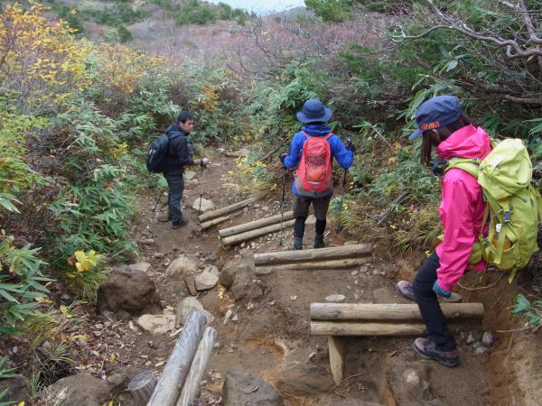 - 安達太良高原登山口(25分)馬車道分岐(100分)くろがね小屋(40分)峰の辻分岐(50分)安達太良山頂(100分)ロープウェイ駅