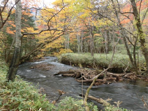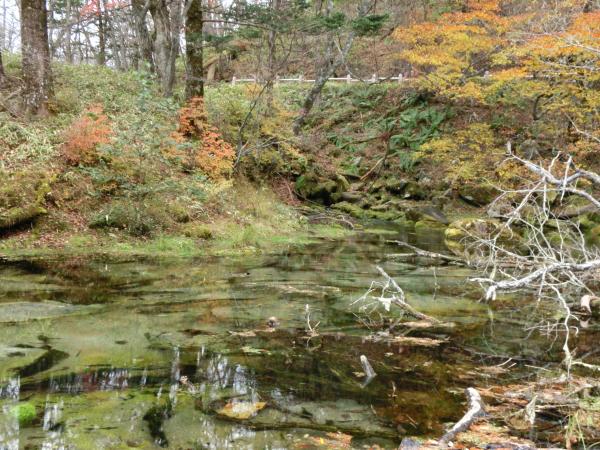 - 湯滝バス停(35分)→ 泉門池(60分)→ 赤沼分岐(30分)→ 竜頭の滝
