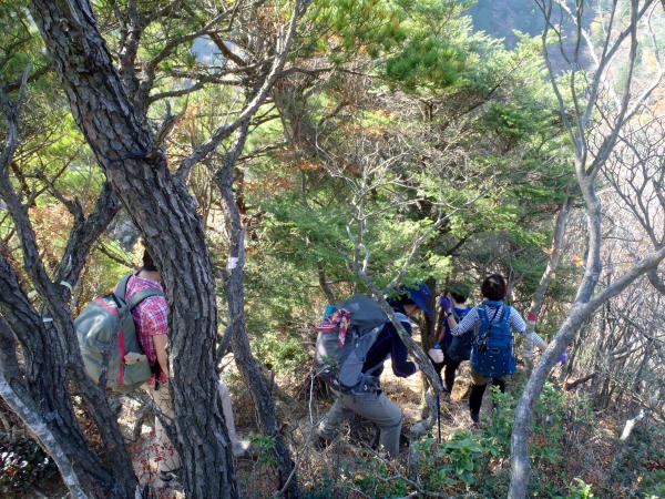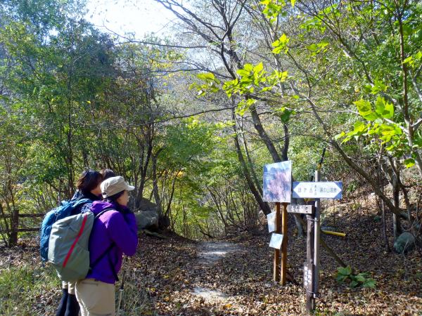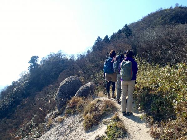 - 御在所岳中道ルート前P ⇒6分⇒ 長石尾根登山口 ⇒60分⇒ 弥一ヶ岳(802m) ⇒10分⇒ 三ツ口谷分岐 ⇒70分⇒ 鎌ヶ岳(1161m) ⇒10分⇒ 岳峠(長石谷分岐) ⇒60分⇒ 犬星の大滝 ⇒60分⇒ 登山口