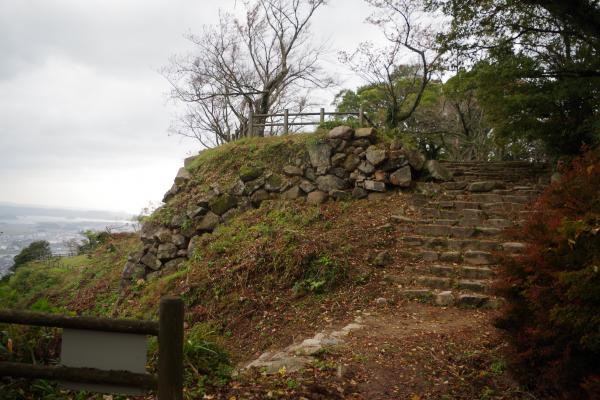 山頂からは海も望めて、ホッと出来る場所です、山頂には売店も自販機も有りません、本来の大手門からのルートで登ってこられる観光客の方は多いですが、飲み物は携行された方が良いと思います