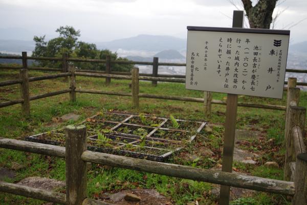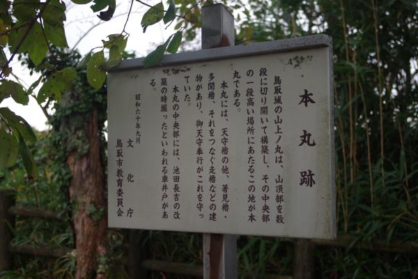 - 展望台入口P<15M>150mピーク<15M>鞍部<30M>久松山<10M>出丸砦<13M>二の丸<20M>天球丸<10M>大手門<20M>展望台入口P(鳥取市埋蔵文化財センター)