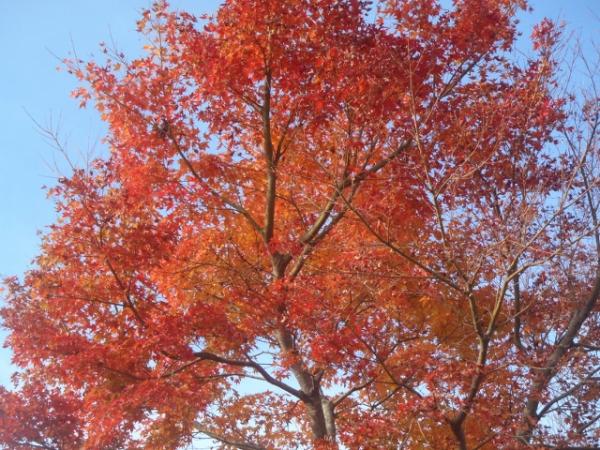 キャンプ場の紅葉はいつもながら見事でしたが、まだ青い葉がたくさん見られました。