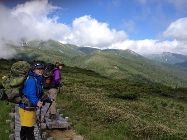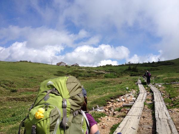 - 1日目:折立-(140分)-三角点-(120分)-五光岩ベンチ-(80分)-太郎平小屋-(20分)-薬師峠キャンプ地