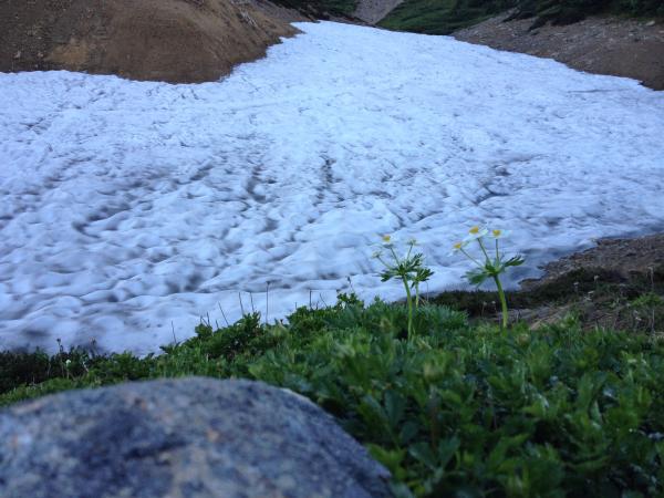 頂上までには雪渓が2か所あり、早朝は凍結に注意です。
