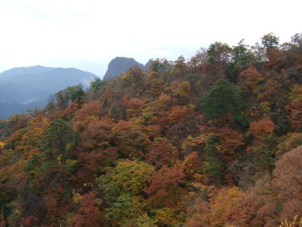 紅葉は中腹あたりが見頃で、麓は半分程度色付いた状態です。
