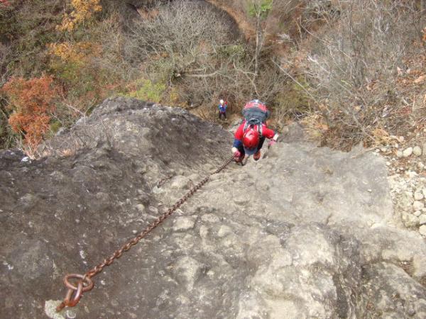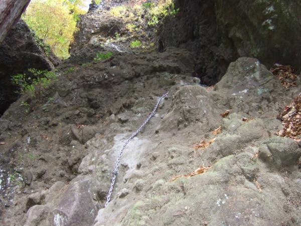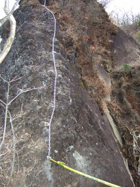 玉石~大のぞき間で崩落が最近あったようですが、現在は岩に新しい鎖が設置されていました。