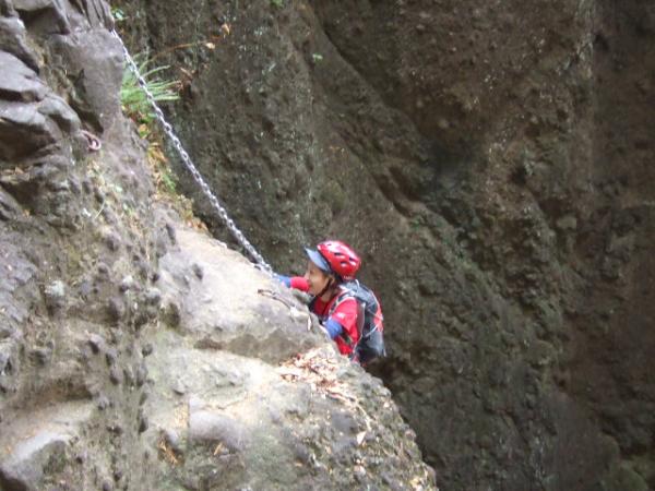 しかし、大のぞきを過ぎた所にある約30mの滑り台状の下りは、腕力も必要となりますので、ロープを出した方が楽かもしれません。