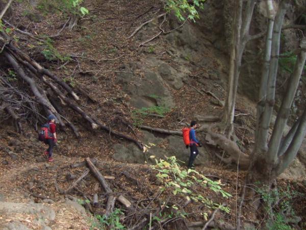 一方、下山で利用したタルワキ沢コースは、急降下でしかも浮石や落ち葉が多いので、スリップに注意が必要です。