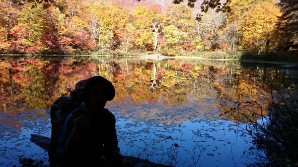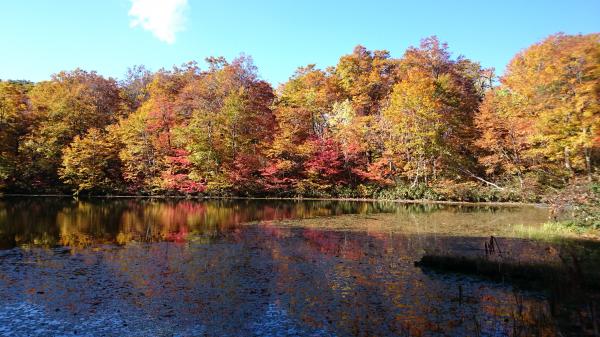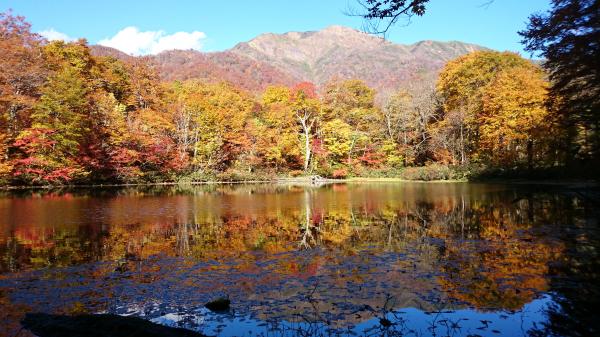 紅葉はまさに見頃といった感じで池に写りこむ三ノ峰と池を囲む木々の紅葉のコントラストが見事でした。