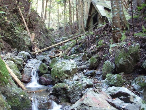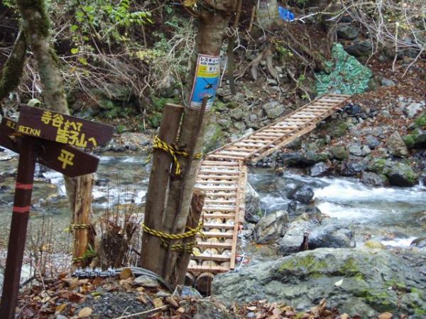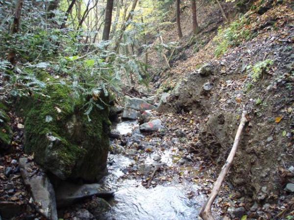 - 寺谷の登山道は沢筋で足場の悪い所が何箇所かありますが、道はしかっりついており、赤いペイントが目印になっています。