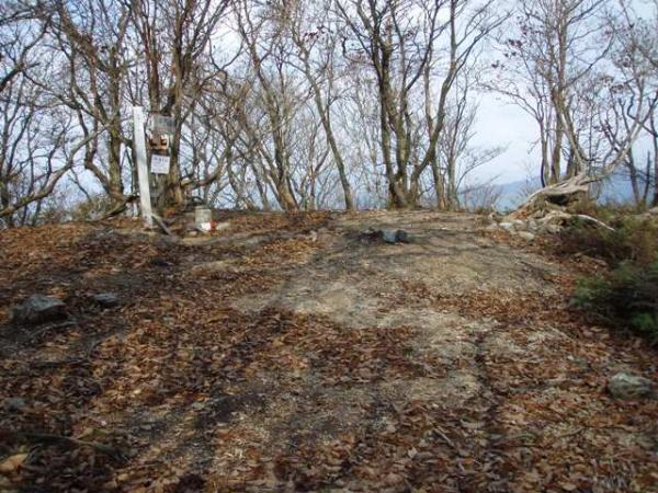 そこから先はどんどん傾斜がきつくなっていき、何箇所かロープが設置されていました。最後の物凄く急な斜面を登り切ると、稜線に到着。すぐ右の道が東尾根登山道。そのまま少し先の分岐を右に行くと、皆子山の山頂に到着。三角点あり、展望あり。気温は10度。風が通って肌寒い。