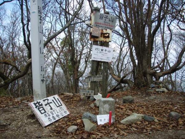 - バス停・平~30分~寺谷出合~80分~皆子山(971.5m)~90分~百井川・渡渉地点~60分~バス停・平