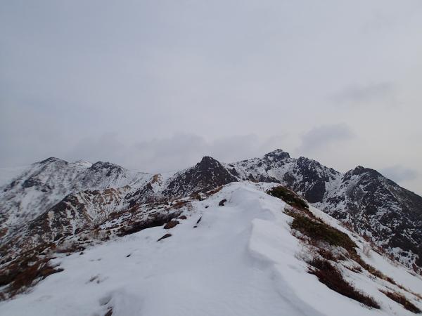 今シーズンの中で一番体力と神経と頭を使った山行になりました。特に、峰の茶屋跡避難小屋から朝日岳の間のルートは予め本にて剣ヶ峰のルートを知っていたので、高度感と滑落したら、まずい一般ルートを避けられたのは時間短縮にも、リスク回避にも良かったと思いました。