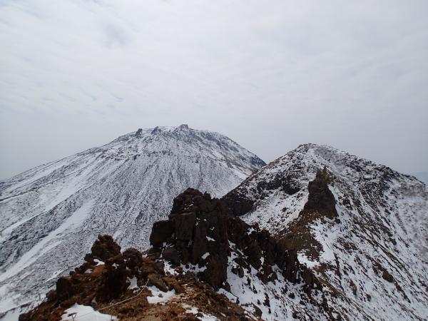 冬期に三本槍まで行くには、早立ち、早着きが必須なので、登りでロープウェイを使ってからの登山ではかなり厳しいと思います。三本槍周辺ではスノーシューがあるとかなりの時間短縮と体力の温存にも繋がります。下りはシリセードが楽ちんです。もちろん、ピッケルでスピードはコントロール必須です。