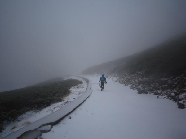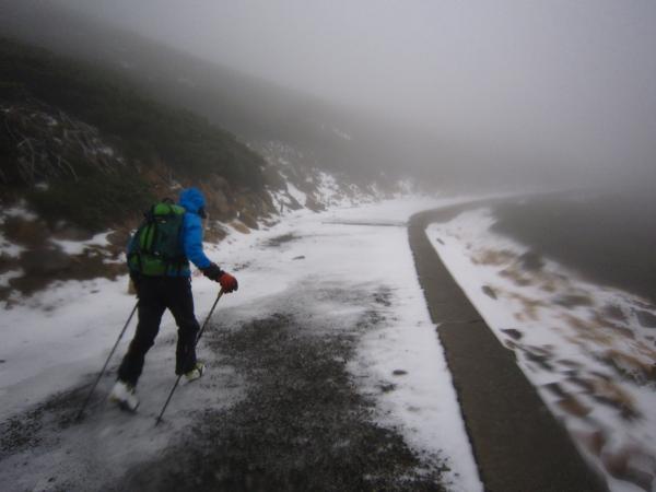 - 標高2700m付近から雪道