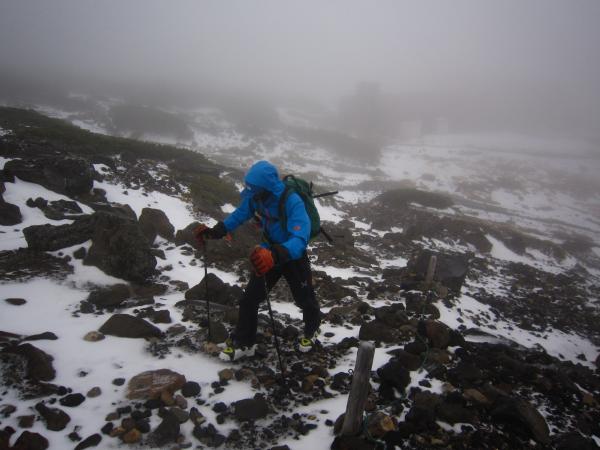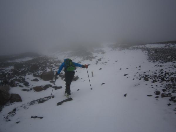 しかし一向に雪は現れず、更に標高2600m付近で猛烈な風になったので、その場にスキーをデポして山頂を往復。