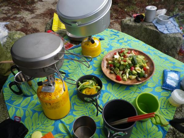 日中は暖かでも、やっぱり朝晩はグンと冷え込みます。寝袋に入ると、朝までぐっすり眠りました。近場でアクセスが容易なので、ちょっと重い荷物を頑張り、豪勢な食事にできました(水場はないので、余裕をもって)。