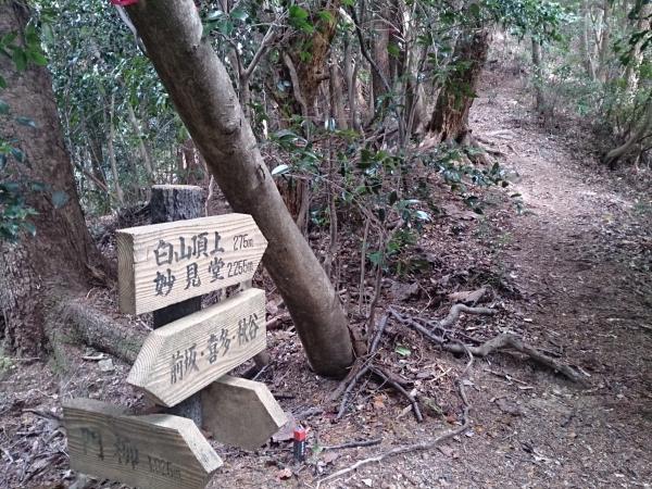 この白山へ上がるルートはいくつかありますが、今回は車の止めやすい秋谷ルートを選択しました。登りはじめこそ泥に足を取られ何度がすべる場面もあったものの、それ以外は特に難しいことはありません。