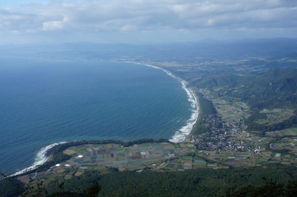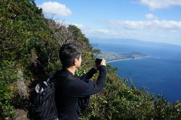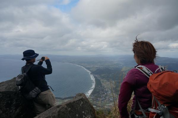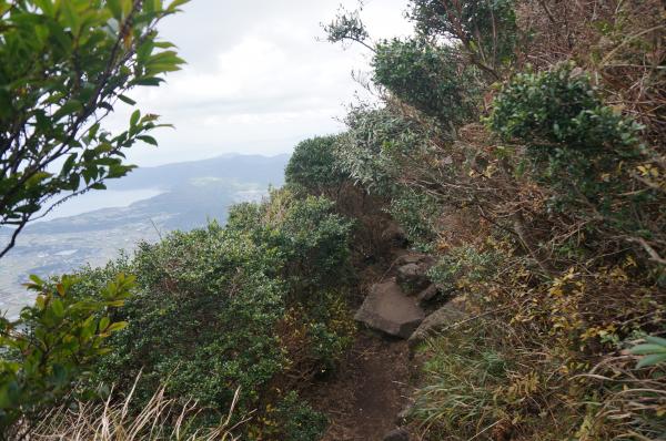 登り始めてからも視界がひらけるたびに歓声を上げながらシャッターを押し続けています。気づかされましたが、開聞岳の魅力は視界がひらけるたびに見える景色が変わること。それはらせん状に登る登山道のせいですが、夏は暑くて虫も多く辟易していました。しかし、樹林で遮られている分、景色が見えたときの感動が増すのでしょう。遠くから来た方と一緒に登り、この山の魅力に気づかされたのでした。日本列島が寒波に襲われ、ここ南九州、本土最南端の百名山の山頂も風が強く、今シーズン一番の冷え込みでしたが、冷えてこそ、風が吹いてこその景色が望めたので、もっと寒くなってからまた来ようと思いました。
