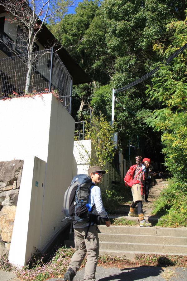 - 芦屋川パーキング→(10分)→登山口→(25分)→鷹尾山(272m)→(40分)→