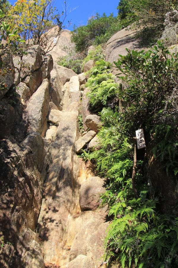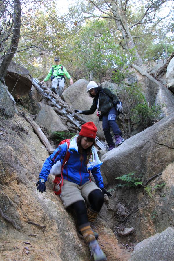 - 岩梯子から荒地山間で岩登りが連続します。