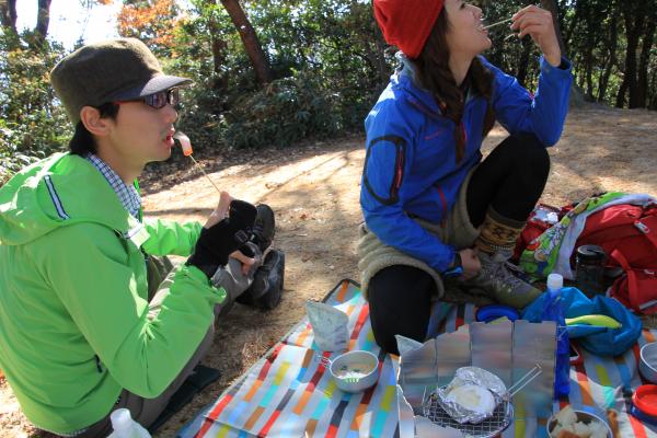 荒地山山頂で昼ごはん、初めて食べるチーズフォンデュ☆