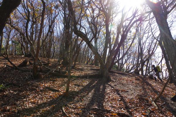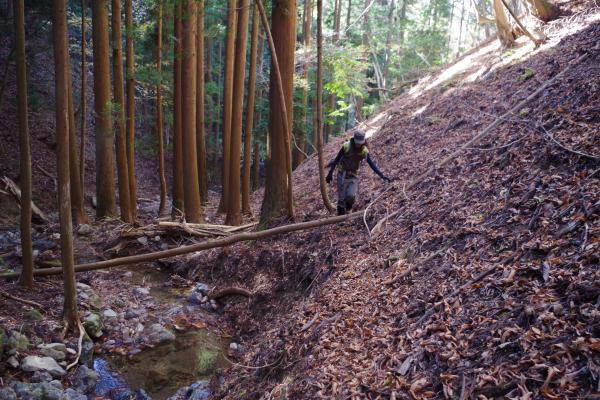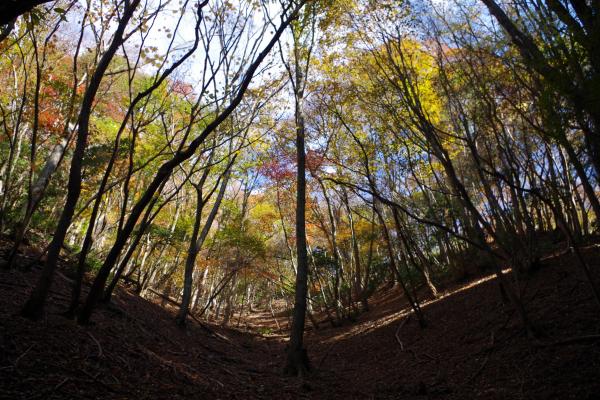 尾根に出るまでと、谷に下る部分が問題ですが、そこは里山の強みで、いたる所に林業の作業道が有るので