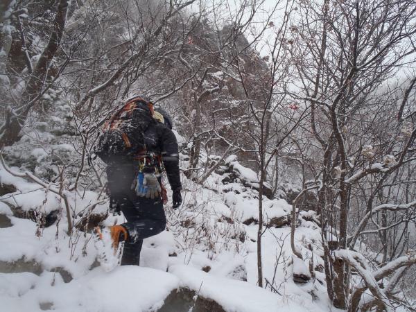 小樽赤岩、この時期は山岳会の冬のトレーニングなどにも使われるようです。