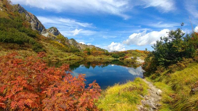 晴れた空が冷えた空気を凛とさせ、木々の緑や赤や黄色がより一層強くなる。