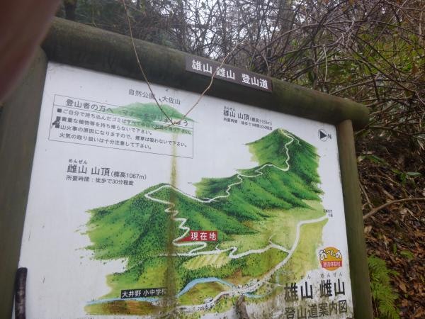- 登山口(40分)雌山(25分)雄山(25分)雌山(30分)登山口