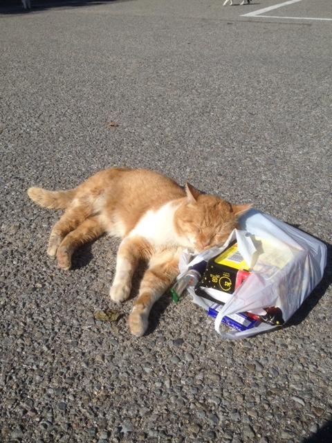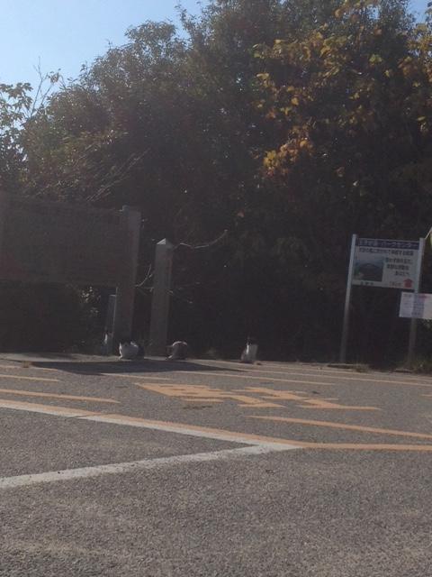 駐車場に着いたらすぐに猫に取り囲まれます。近隣の方に餌付けされてるようでとても
