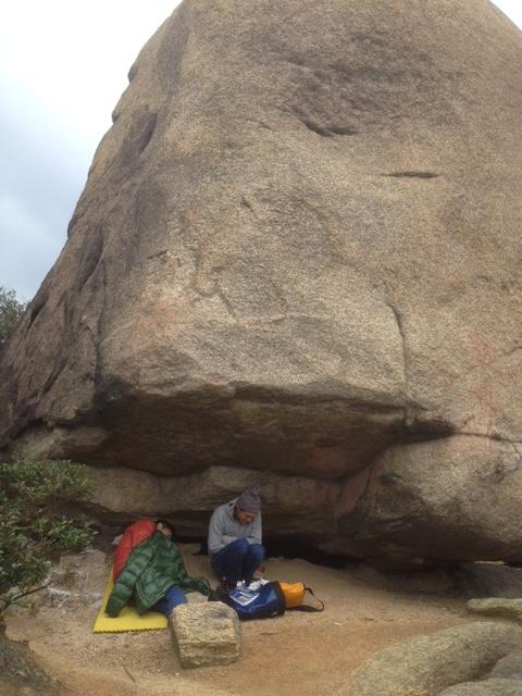 花崗岩の結晶に乗り込み、悪いカチを保持する良い課題でした。途中に雨に降られて雨宿り