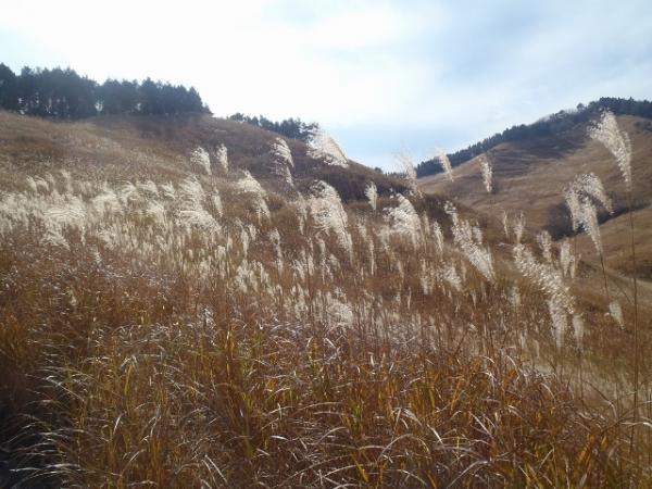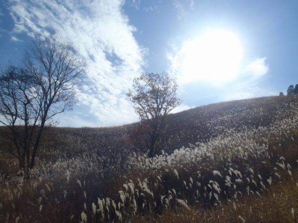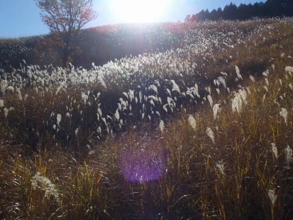 陽の光でススキの穂がキラキラと輝く様はまるで黄金色の海です。