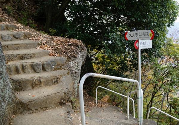 - 大月駅-90-稚児落し-40-兜岩-60-岩殿山-40-大月駅
