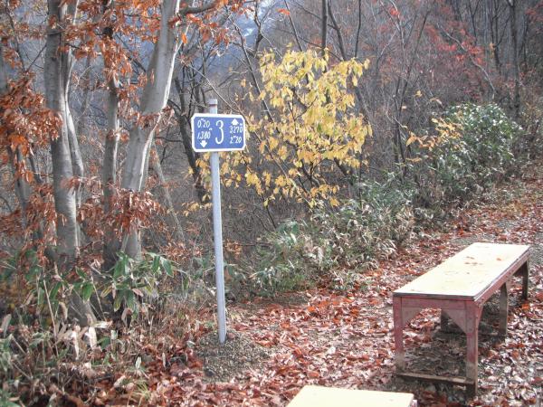第2水源ダムの堰堤を越えると中央コース登山口です。1合目の標識には山頂まで3時間とありました。横に但し書きがあり、健脚者のコースタイムであり3時間半から4時間は見といた方がいいよ、とのこと。ほほう、私とて登山用品店に勤める身。3時間登頂に挑戦してやろうじゃないの!