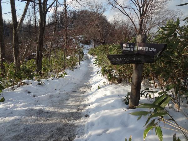 - 旭山記念公園登山口→(50分)→T6→(20分)→馬の背→(45分)→頂上→(20分)→北の沢分岐→(35分)→北の沢登山口