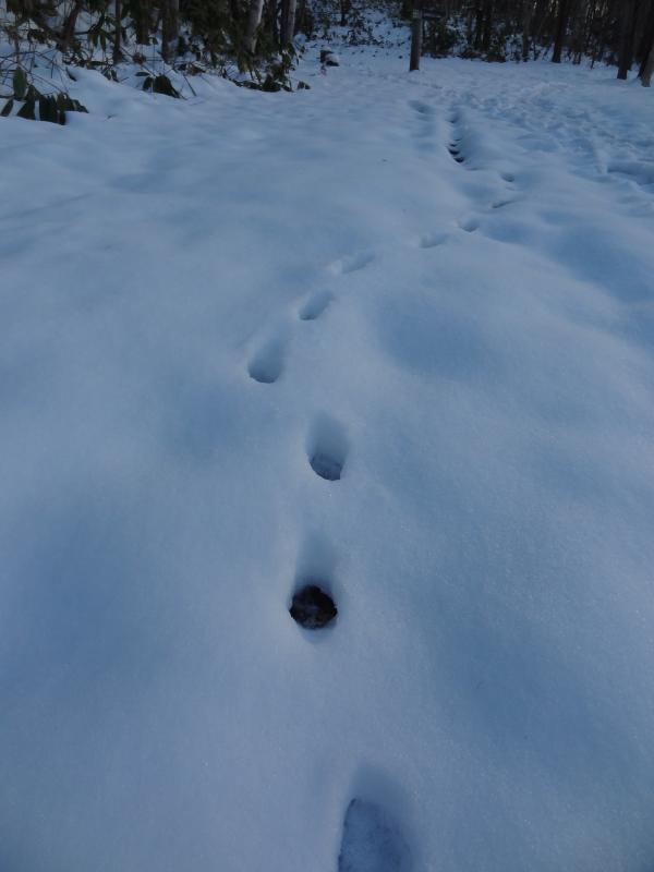 雪の上には、キツネやシカ、リスなどの足跡があり、多くの動物を感じることが出来ました。耳を澄ませはキツツキが木を叩く音も聞こえます。枝葉が少ない分、野鳥の観察もジックリ出来ました。撮影は出来ませんでしたが、アカゲラやゴジュウカラを見ることが出来ました。運が良ければクマゲラ(天然記念物)も見れるかも!?