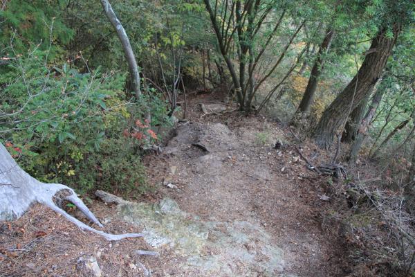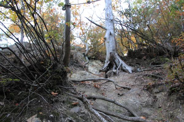 急坂の連続でロープが所々に設置されているので足を滑らさないよう慎重に登ります。