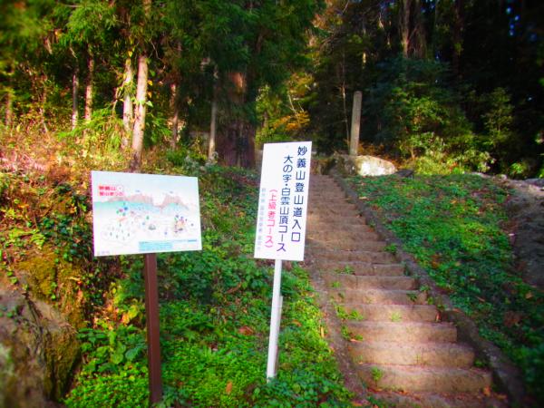 - 大鳥居→(10分)→妙義神社→(40分)→辻→(30分)→見晴→(60分)→天狗岩(30分)→相馬岳→(90分)→鷹戻し→(60分)→大砲岩→(10分)→第四石門→(20分)→石門群登山口→(30分)→登山道入口→(30分)→道の駅みょうぎ