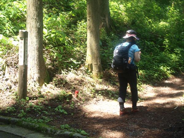 車道と登山道の分岐が現れたら、迷わず登山道へ。