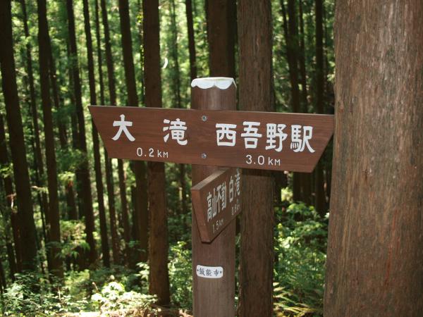- 道は全体的に歩きやすく、車道が入り混じったコースとなっています。大滝へ下る道は細くなっているので慎重に歩いてください。大滝から登山道へ戻る近道には倒木があります。