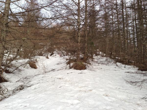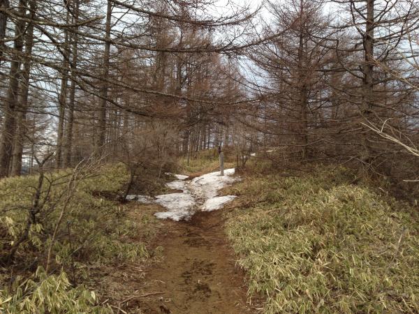 今年の記録的な大雪のせいで、例年以上に雪が残っていました。そのせいか、このコースから登る方もまだまだ少ないようで、静かな山を独占できました。