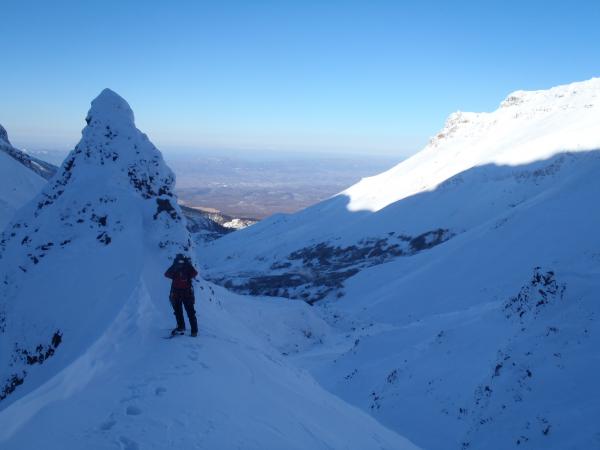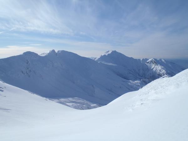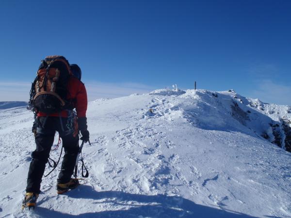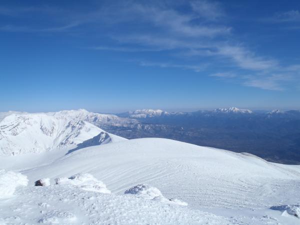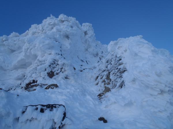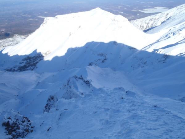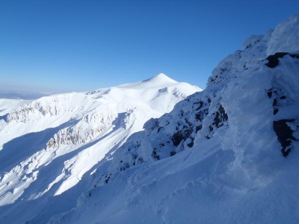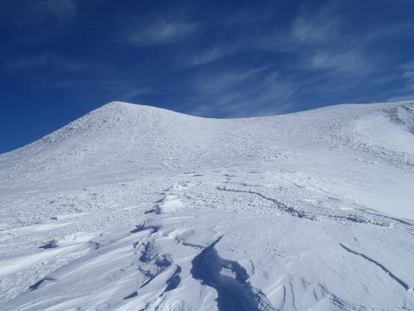 稜線上は、雪が飛ばされ歩きやすい部分も多かったが