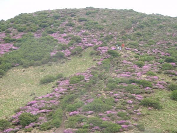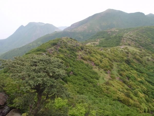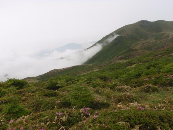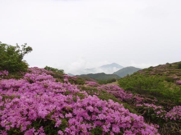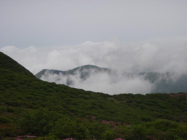 雨でかなりガス(霧)が発生して視界が悪いと思ってましたが、視界良好で、歩き易かったです。扇ヶ鼻山頂付近は風が強かったです。雨具と防寒具は必需品でした。ミヤマキリシマが辺り一面ピンクで、綺麗でした。他にもたくさん花が咲いており、綺麗でした。