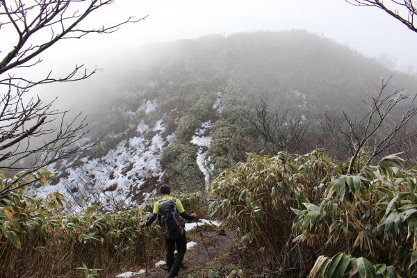 雪を求めて登ったのですが、まだまだ雪山というには早かったです。